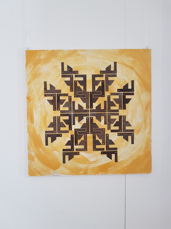 И действительно, все картины Павла предельно искренни. В них смешиваются разные техники: например, на большинстве полотен можно увидеть коллажи из металлических пластин и расписанного красками фона. Материалом для металлических деталей послужили кремниевые пластины трансформаторов, что отражено и в названии выставки.