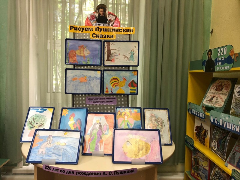 Ребята увидели красочную выставку рисунков по мотивам сказок Александра Пушкина, которая была организована благодаря детям, проходящим лечение в Онкоцентре имени Блохина.